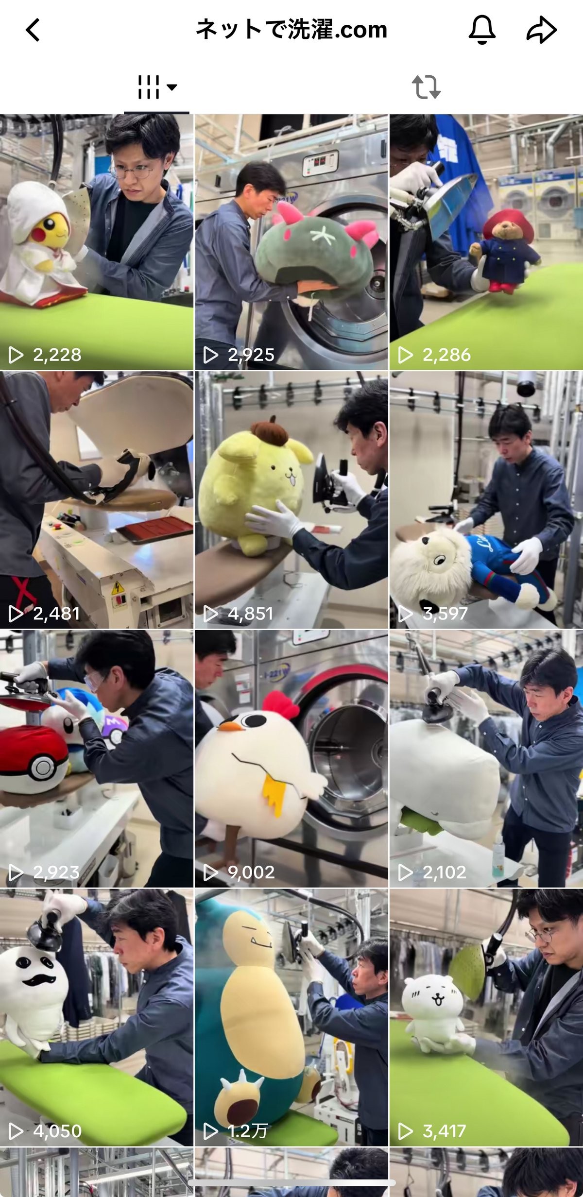 アカウント名は「ネットで洗濯.com」というぬいぐるみ専門の洗濯サービスを行っている会社さんです。